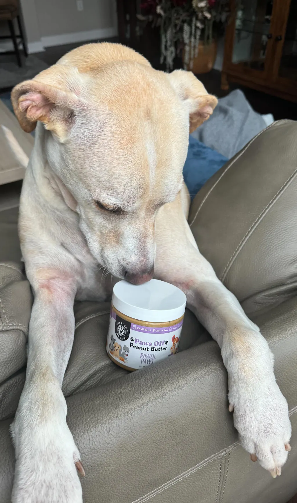 Introducing a tail-wagging delight crafted with love and care for your furry companion. Power Paws Peanut Butter is packed with nutritious goodness and bursting with flavor, this delectable treat is the perfect way to pamper your furry friend. Made with all-natural ingredients and crafted specifically for dogs, it's a tasty way to support their health and keep those tails wagging with delight. Power paws is also sugar and stevia free! Treat your pup to a spoonful of happiness!